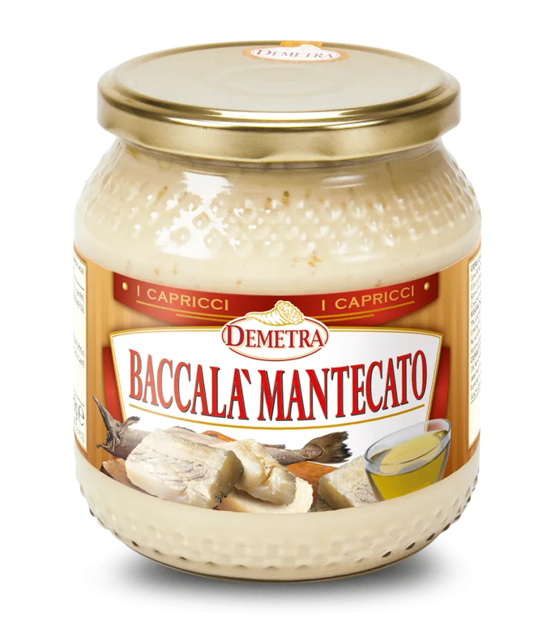 Prodotto che ripercorre la ricetta veneta con stoccafisso ridotto in crema insaporito dal connubio di olio e scalogno. Gustoso da servire come antipasto su crostoni di polenta o crostini di pane, può essere utilizzato anche per la preparazione di originali pizze, ideale completamento negli antipasti misti di pesce. Disponibile anche la confezione risparmio da 6 vasi per grandi consumatori.