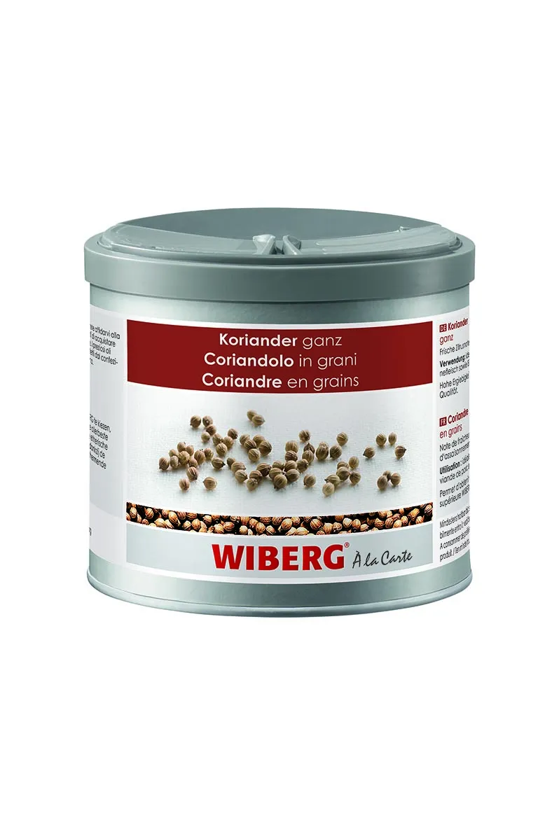 L’alta qualità delle materie prime e la naturalezza nel trattamento delle stesse suggeriscono un dosaggio di coriandolo in grani minore di questi prodotti rispetto a prodotti simili di altre aziende in quanto la nota caratteristica di ogni erba o spezia Wiberg è intensamente persistente.