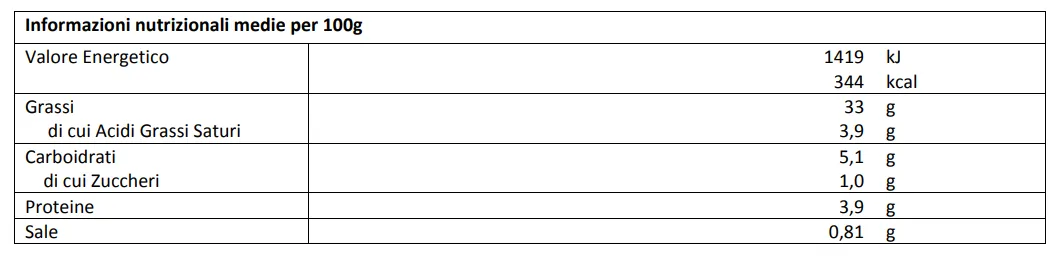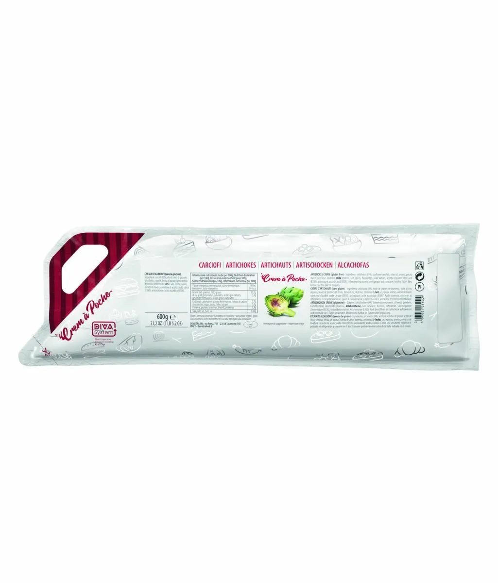 Ingredienti: carciofi 69%, olio di semi di girasole, olio d’oliva, cipolle, fecola di patate, farina di riso, destrosio, proteine del latte, sale, spezie, aromi, estratto di lievito, correttore di acidità: acido citrico (E330), antiossidante: acido ascorbico (E300).