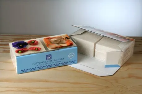 Mattonella di sale dolce di Cervia, dimensioni cm.10×10, spessore cm.3 in confezione da 16 pezzi.