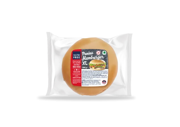 Morbidissimo, in versione XL, ottimo per la preparazione di gustosi hamburger da farcire a piacimento, il Panino Hamburger senza glutine dal cuore tutto italiano.