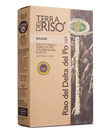 Il Riso Baldo è una varietà di riso superfino italiano, introdotto nel mercato nel 1977.Questo tipo di riso ha un’ottima capacità di assorbire i condimenti rilasciando amido durante la cottura; è consigliato per la maggior parte dei risotti che risulteranno cremosi e perfettamente amalgamati con i condimenti. Si mantiene al dente se viene tostato perfettamente al momento della cottura. Tempi di cottura: 15/16 minuti.